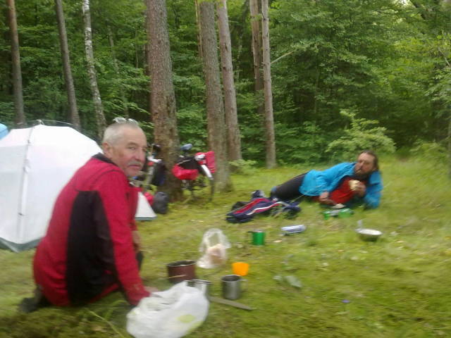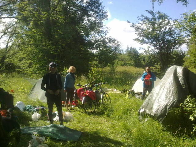и покатили на место ночёвки к "Загорскому" мосту. Поляна ночёвки нам знакома по прошлому велопоходу, поэтому приехали и расположились как дома. Сварили горячий ужин, душевно