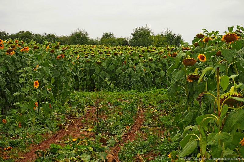 Поля, ветер в лицо, но ноги работают. Завидя подсолнечное поле, влетаю в него. Жаль, что главное светило где-то за облаками, поэтому в настроении тут только я.