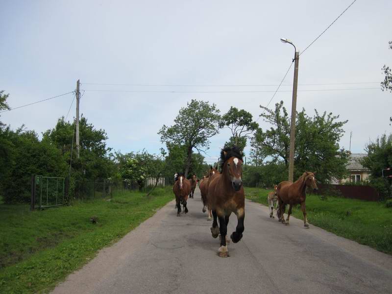 317. Табун лошадей бежит по главной улице Заливного