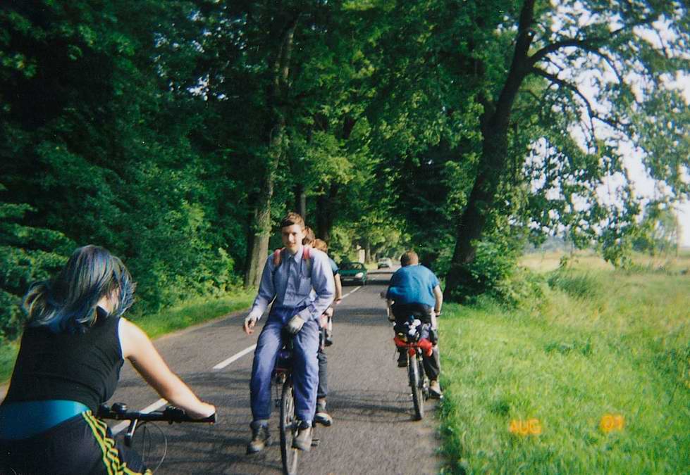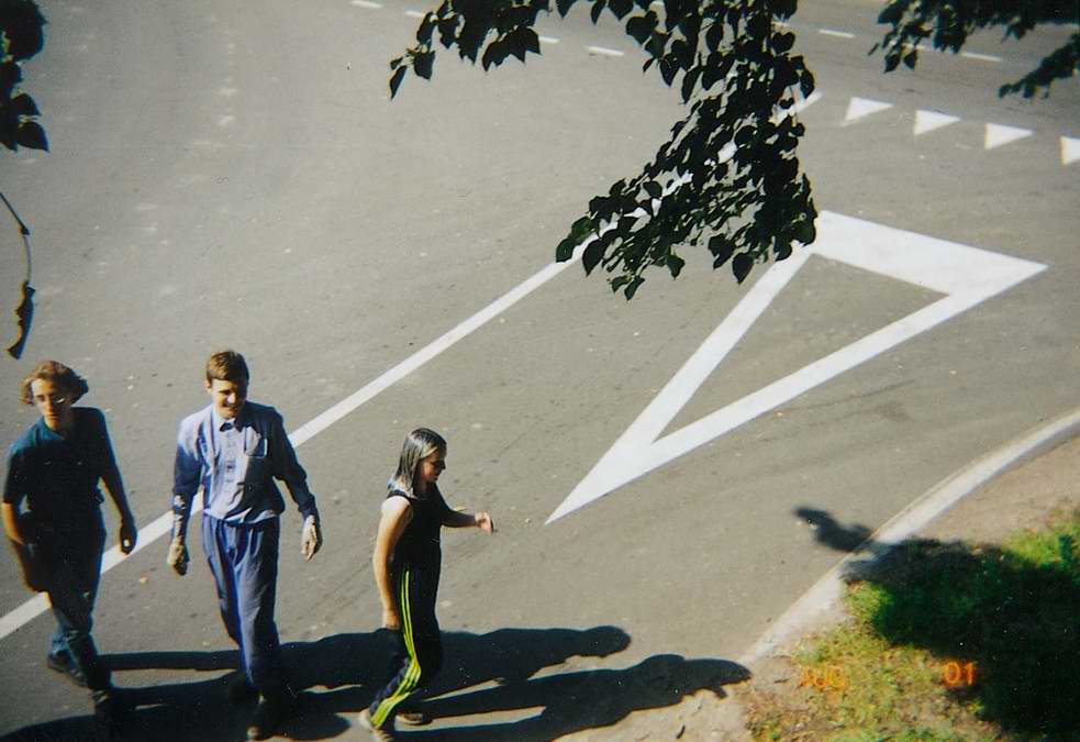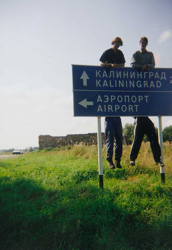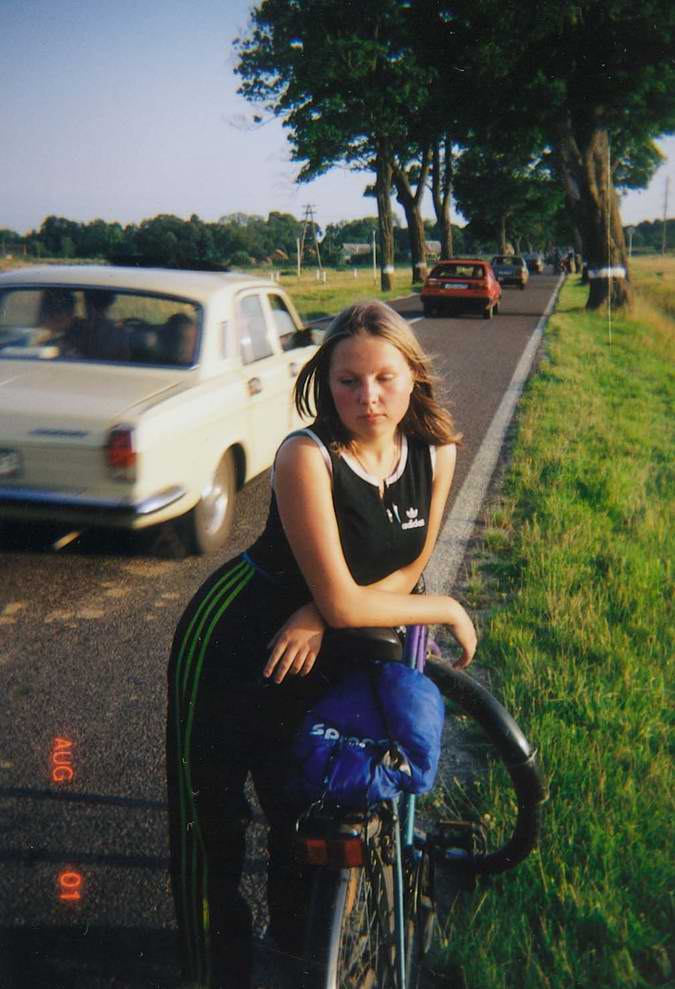 1. Выезд из Калининграда. На перекрёстке с круговым движением /64 и /55.69 нарезают круги на тендеме. На заднем плане едет на "Туристе" традиционный старый дед :-)