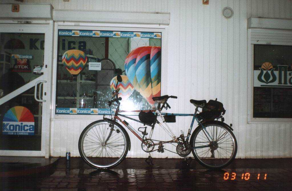 1. Заехали за фотоплёнкой. Тандем на фоне магазина "Konica"