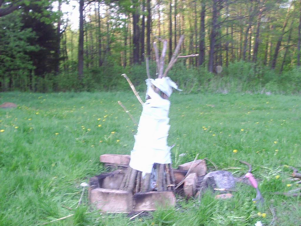43. Установленные дрова для костра. Для надёжности всё обмотано туалетной бумагой :)