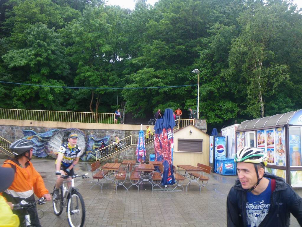 229. Остановка у магазина Пятачок в Приморске. Здесь нас покидают Константин Новлянский, Марина Спасёных, Дмитрий Пасека
