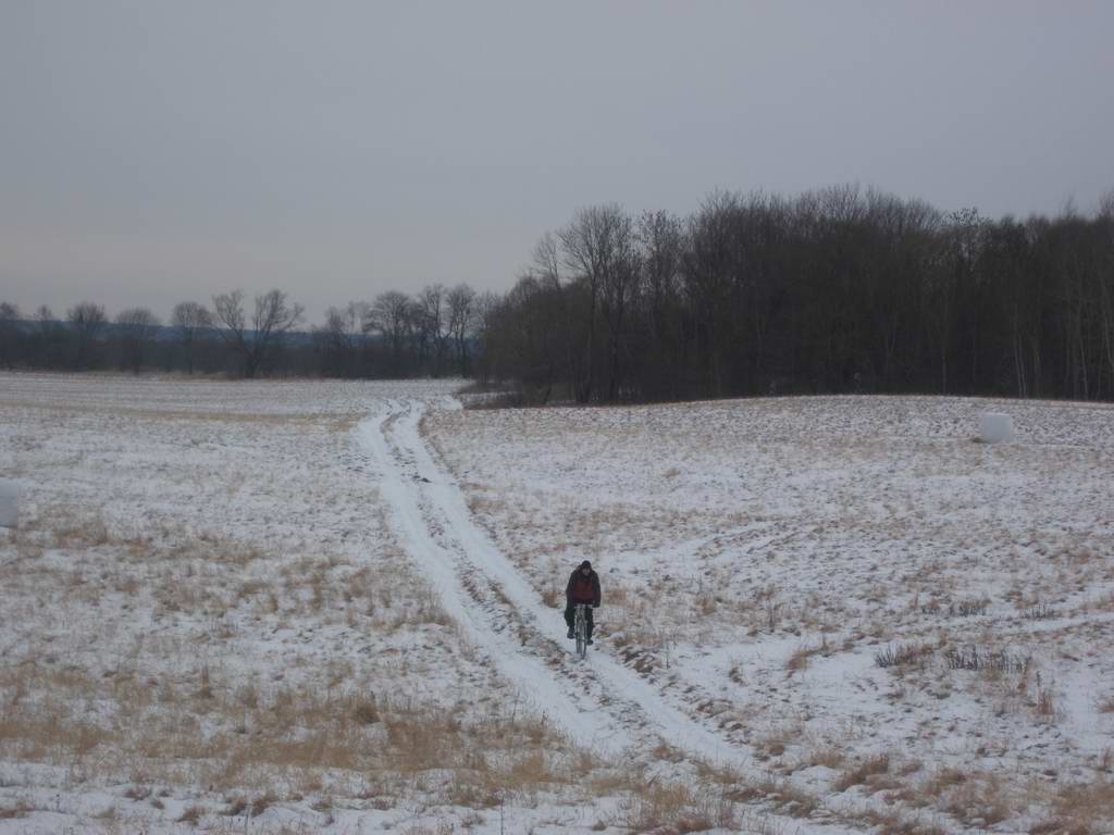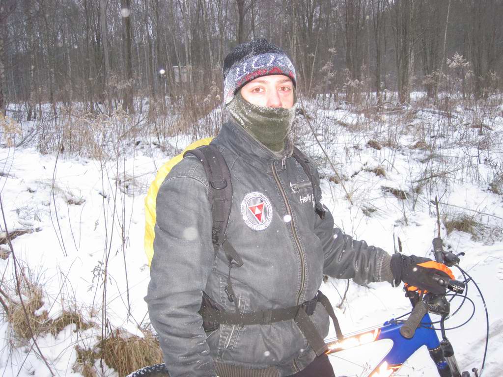 227. Надежда Зима зимой на тюке сена с велосипедом