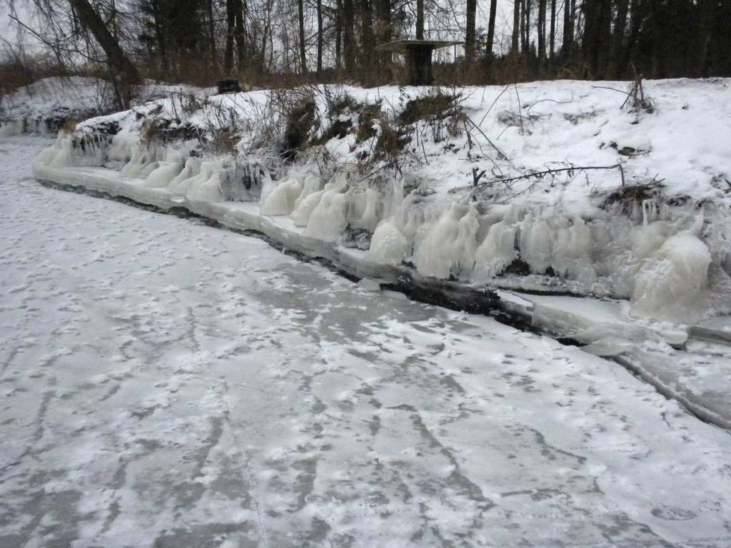 217. Причудливые формы льда на "незамерзающей" реке Низовке