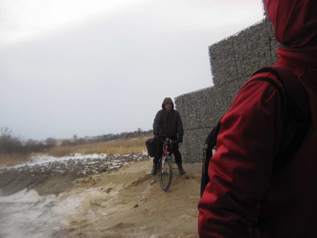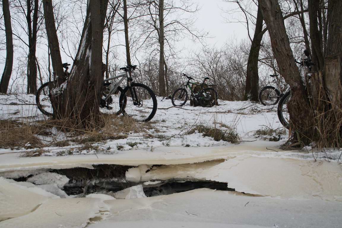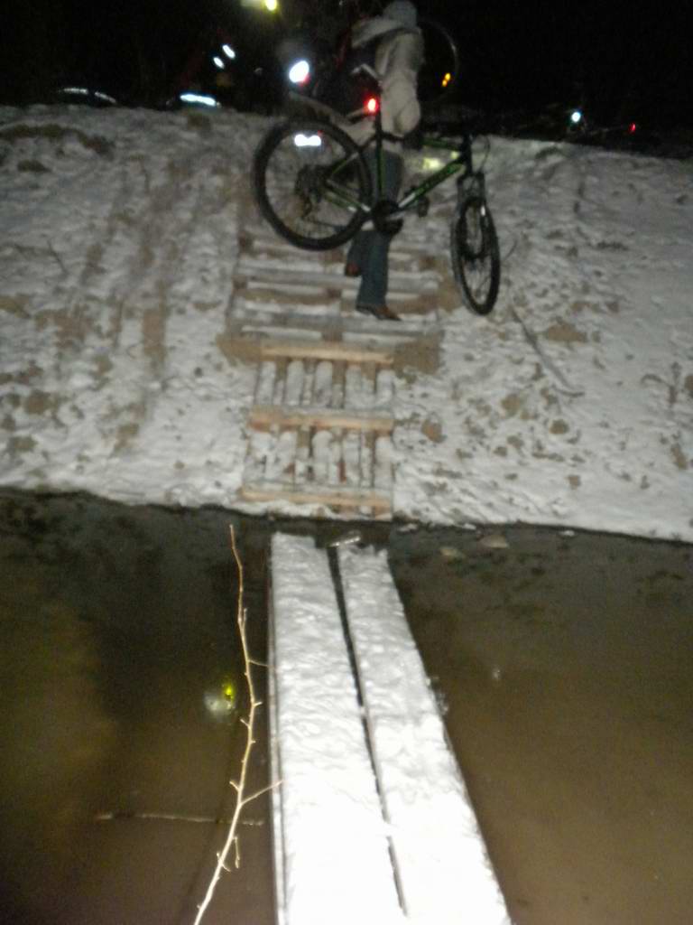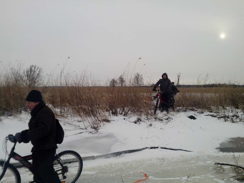247. Переправа по мостику через плохо замёрзшую канаву