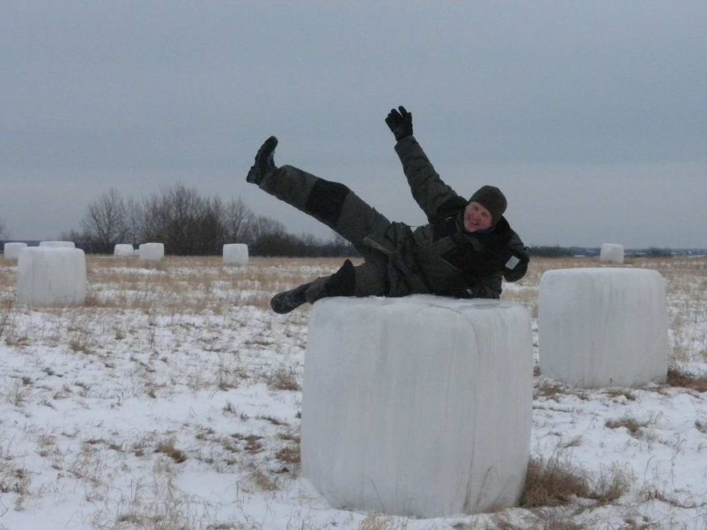 224. Игорь Гордеев разъезжает среди тюков сена